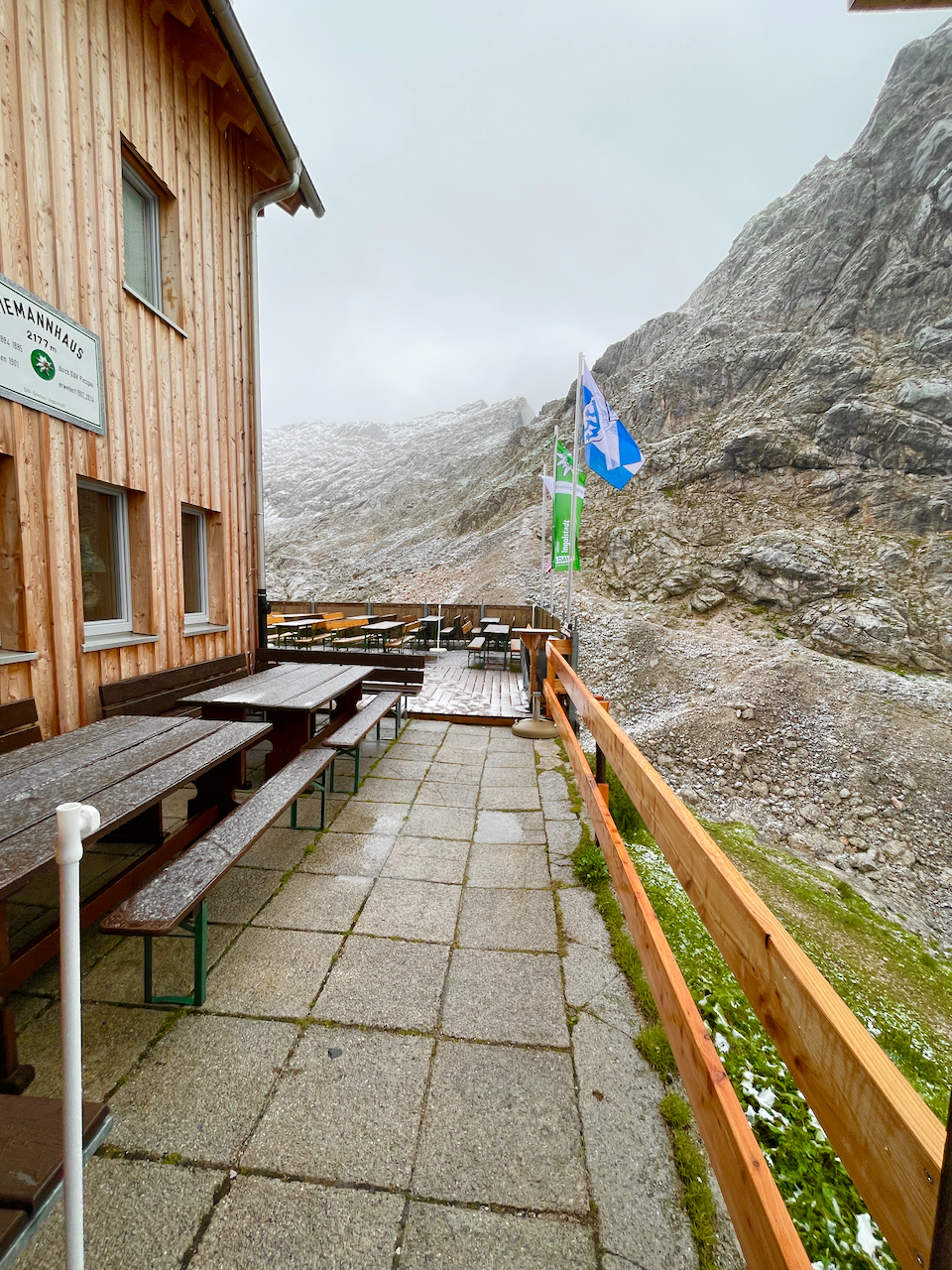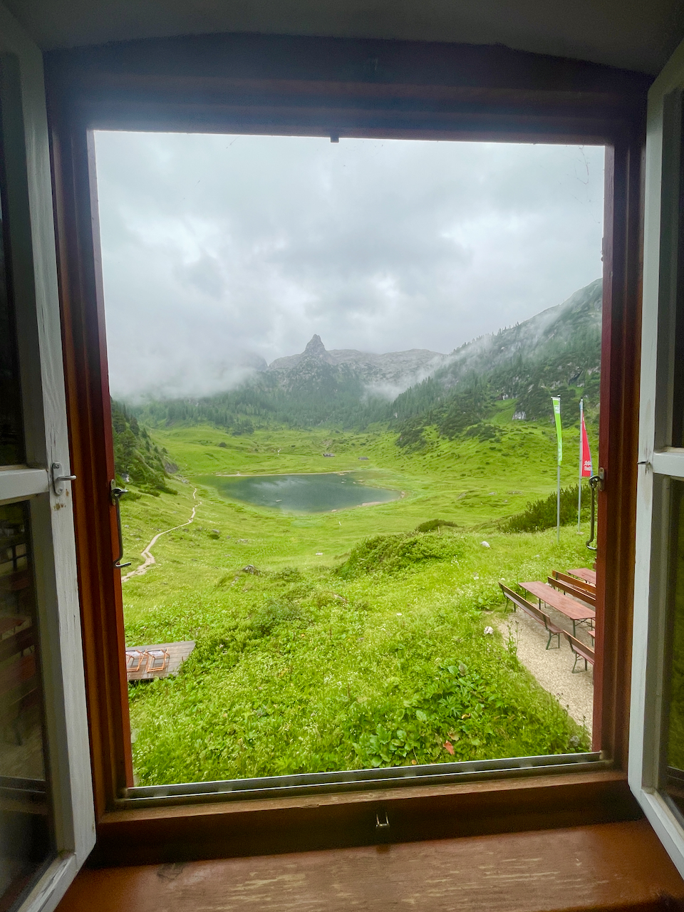 Am Kärlingerhaus tropft die Kleidung im feuchten Trockenraum vor sich hin. Draußen verschwindet das Steinerne Meer im Grau. Der Funtensee verblasst im Nebel. Wir machen es uns in der gut gefüllten Stube gemütlich.