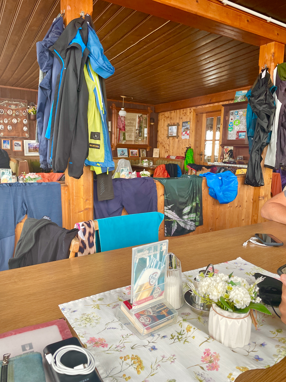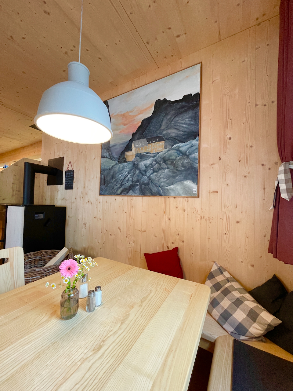 Im Statzerhaus werden wir freundlich empfangen. Nach einem langen Tag fühlt sich eine warme Stube deutlich besser an als jedes Gipfelfoto. Und den fehlenden Trockenraum macht die Wirtin mit dem warmen Holzofen in ihrer kleinen Küche wett: „Habt ihr noch was zu trocknen?“