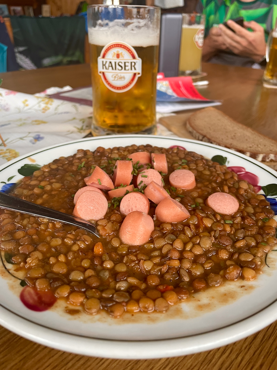 Der Abbruch der Tour wird diskutiert, aber auch schnell verworfen. Und einen Nachschlag gibt’s natürlich auch noch: „Das war echt eine kleine Portion für einen Wanderer. Kommt`s gerne einfach in die Küche und holt euch noch was!“ Schon füllt ein Lächeln wieder des Mitwanderers Gesicht.