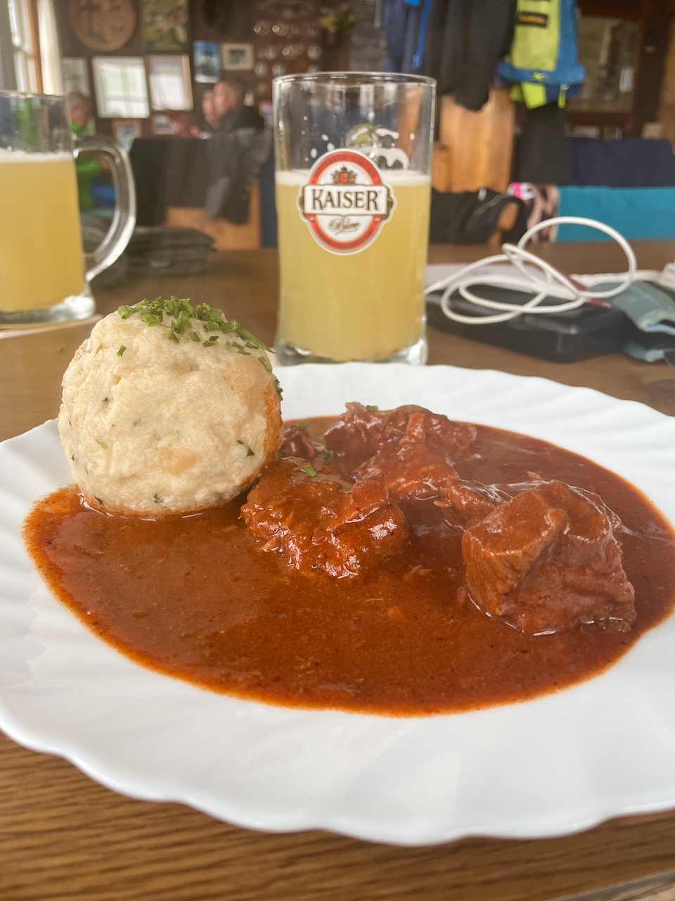 Auf der Trauneralm erfahren wir, dass in den höheren Lagen rund 40 Zentimeter Neuschnee gefallen sind. Das Weiterkommen scheint ungewiss. Das Wetter ist auch nur zeitweise besser angesagt. Die Stimmung der Mannschaft auf dem Tiefpunkt. Da kann auch eine zu kleine Essensportion gestandenen Männern eine Träne in die Augen treiben: „Warum immer ich?“