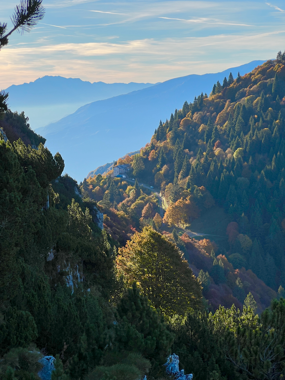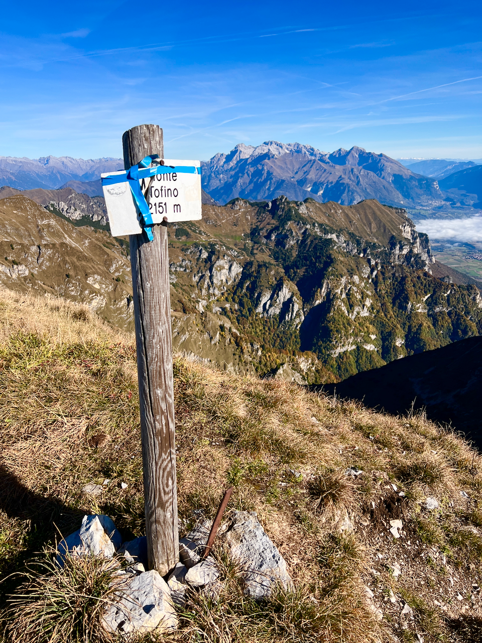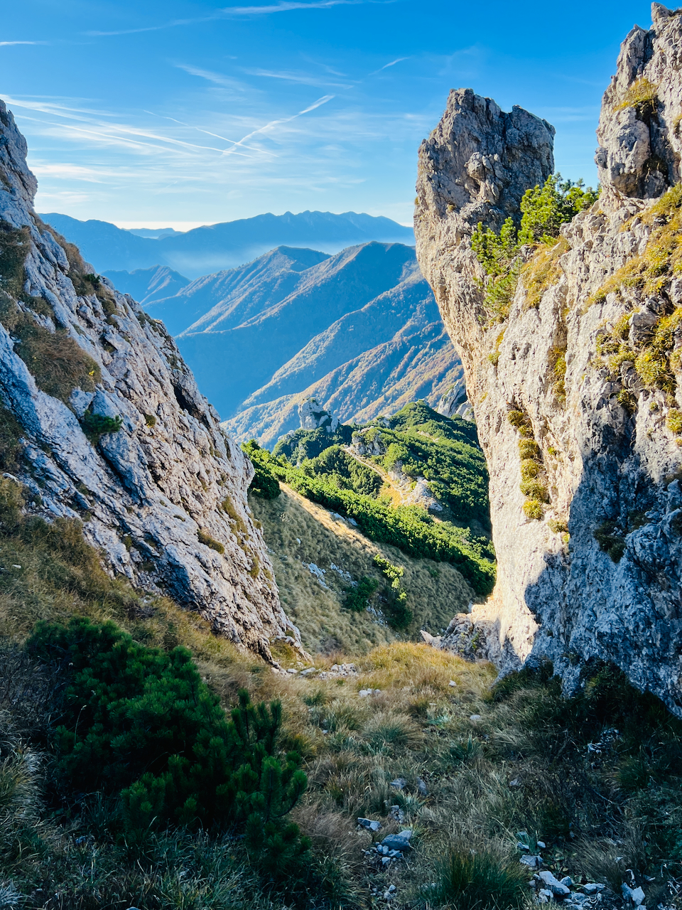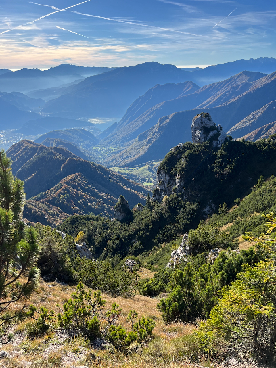 Unter uns liegt das Trentino, über uns ein wolkenloser Herbsthimmel.