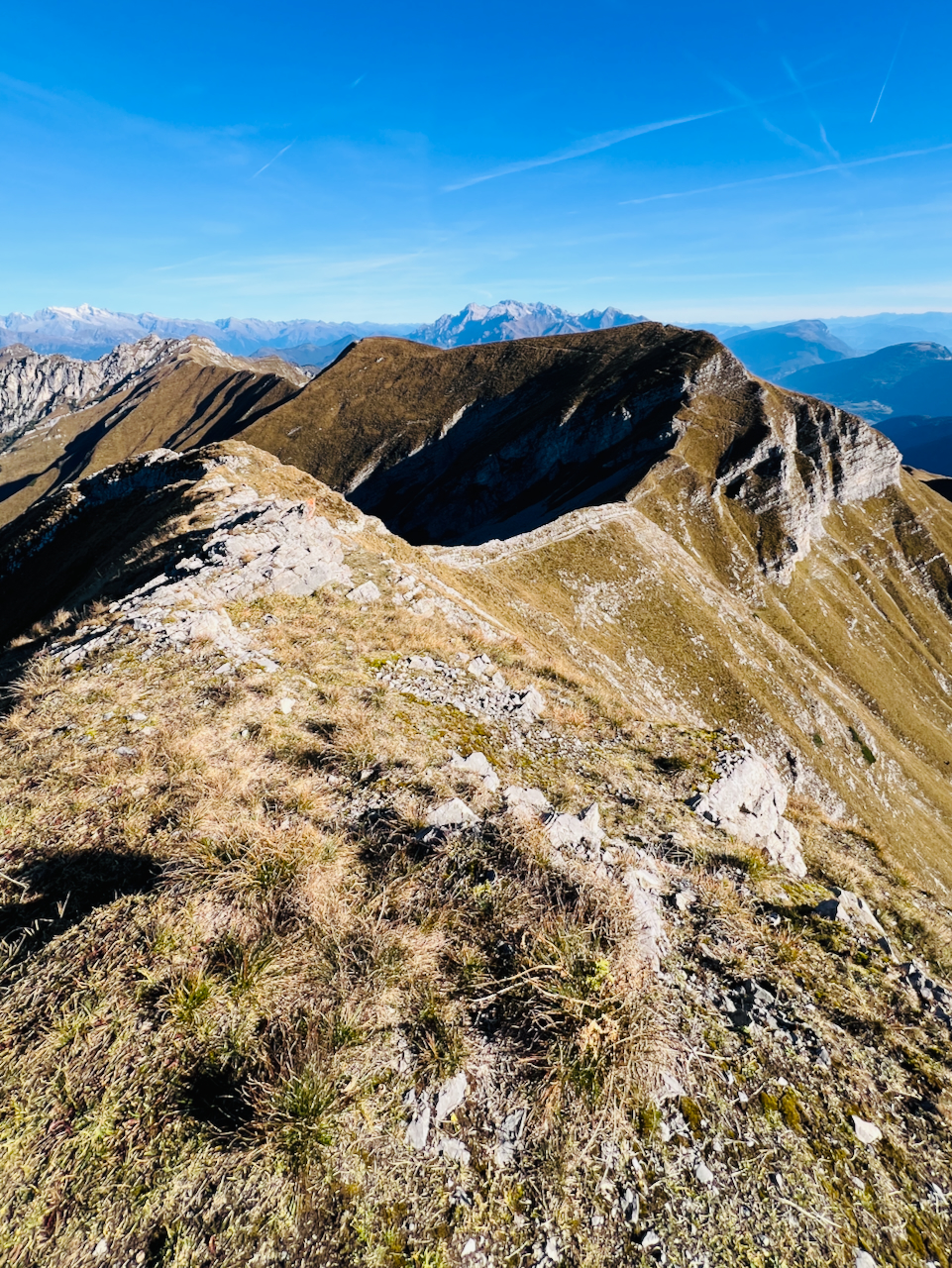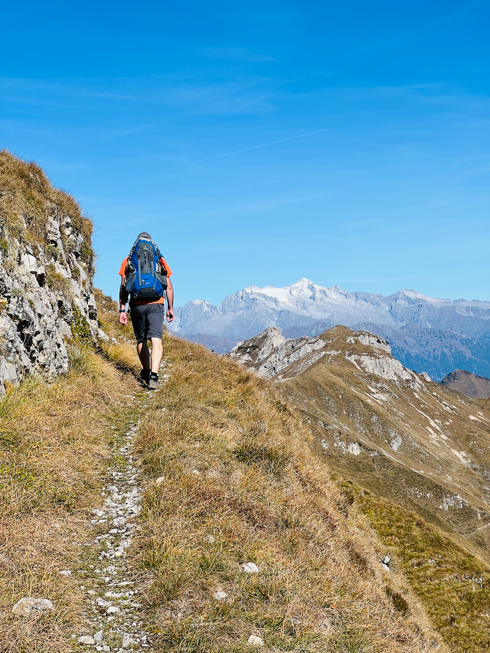 Gute Kondition für lange Tagesetappen erforderlich. Einzelne ausgesetzte Stellen und kurze gesicherte Passagen am Grat, besonders im Bereich des Monte Tofino.