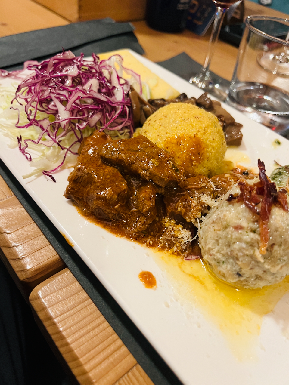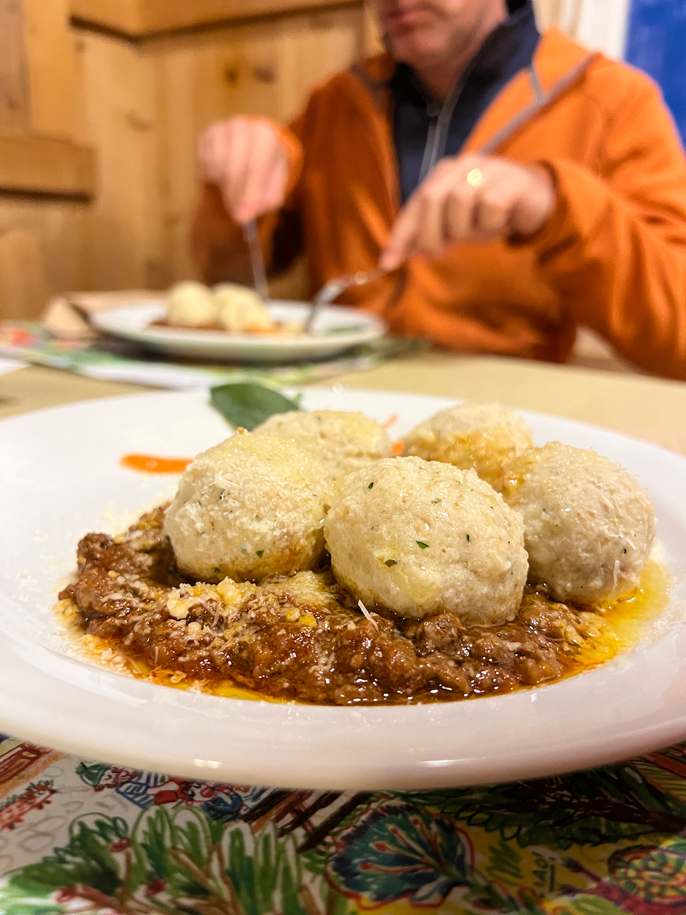 Es wird diskutiert, gelacht und natürlich Wein verkostet. Gespräche über Touren, Hütten, Wetter und Berge füllen den Gastraum – ganz so, wie man sich einen italienischen Hüttenabend vorstellt.