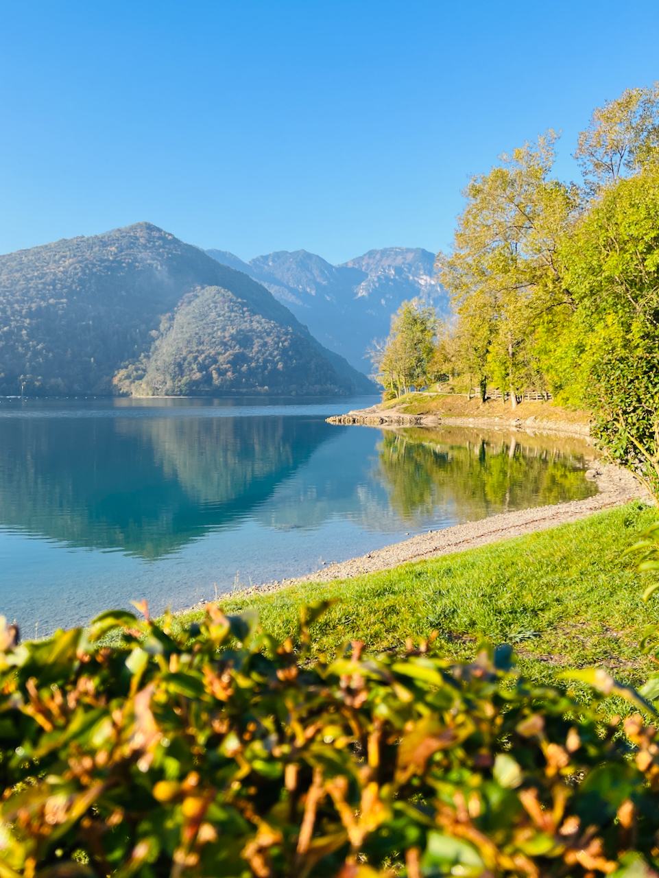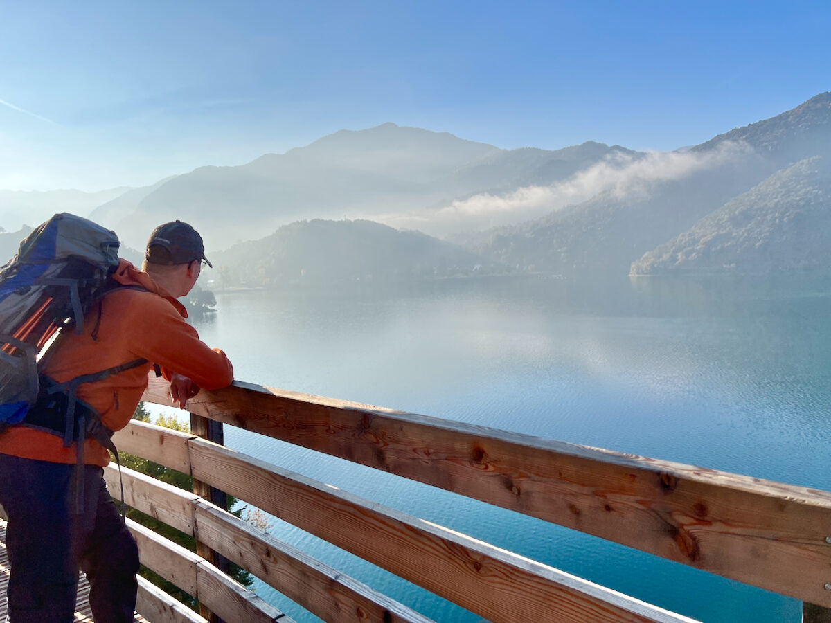 Am nächsten Morgen liegt Nebel über dem Ledrosee. Doch die Sonne kämpft sich schnell durch.
