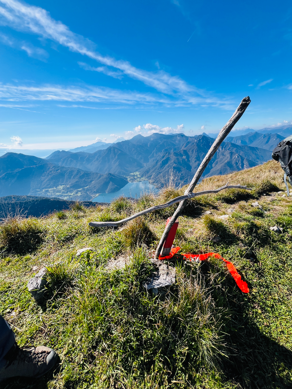Die Belohnung: ein Panorama, das vom Gardasee bis zum Alpenhauptkamm reicht. In der Ferne stehen sogar einige vergletscherte Gipfel im Dunst.