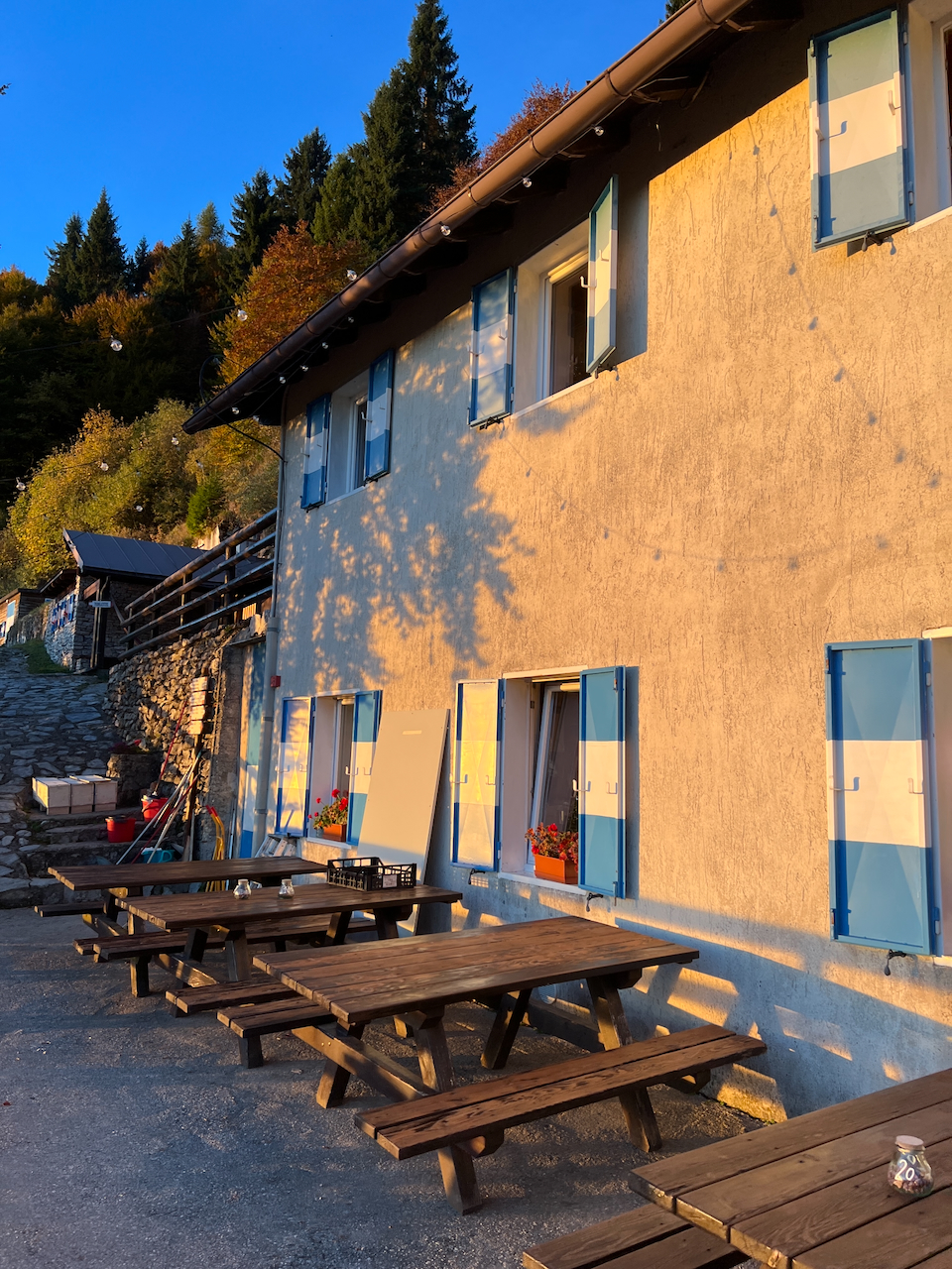 Die Tagesgäste verschwinden bald ins Tal, und für einen Moment gehört uns die Hütte fast allein. Erst am Abend wird es lebendig: Eine Gruppe der lokalen Club Alpino Italiano-Sektion trifft ein. Rund dreißig Menschen, laut, fröhlich, gestenreich.