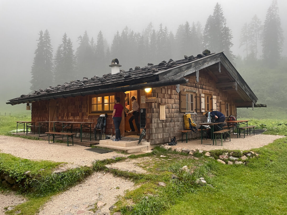 Dann taucht das Kärlingerhaus aus dem Nebel auf.