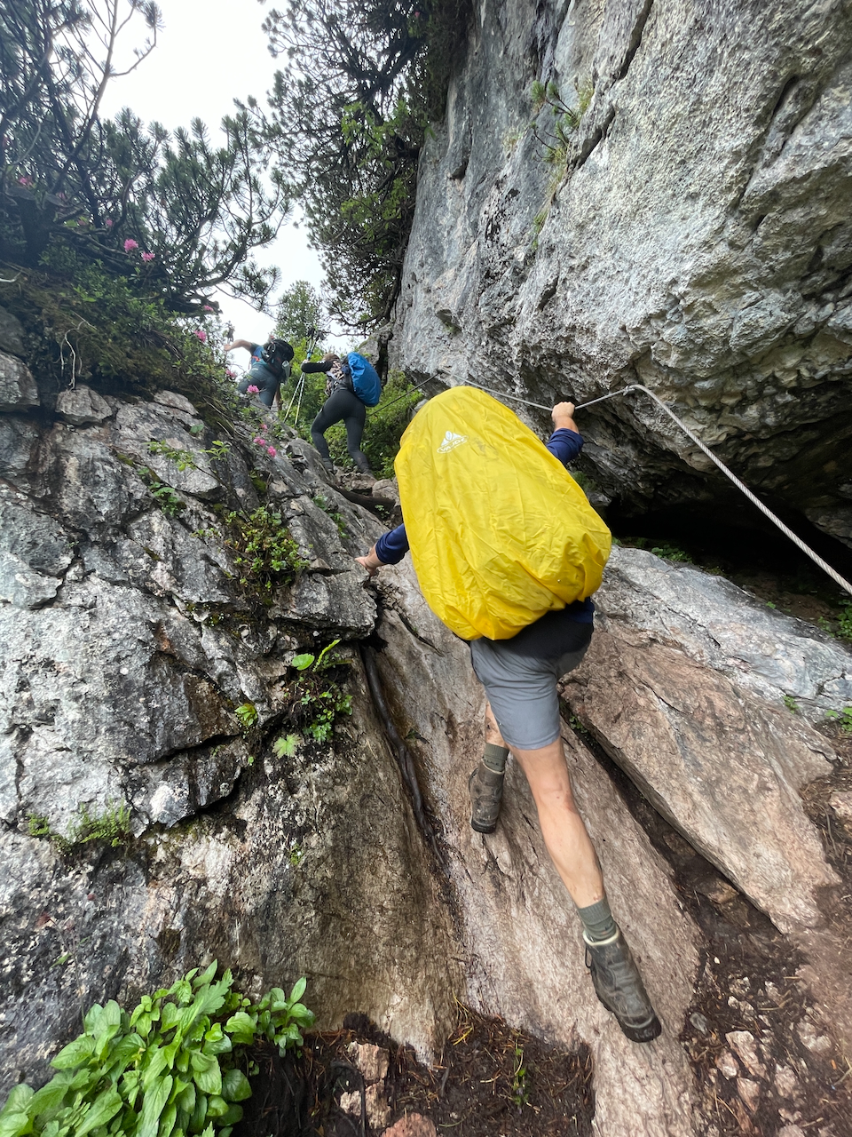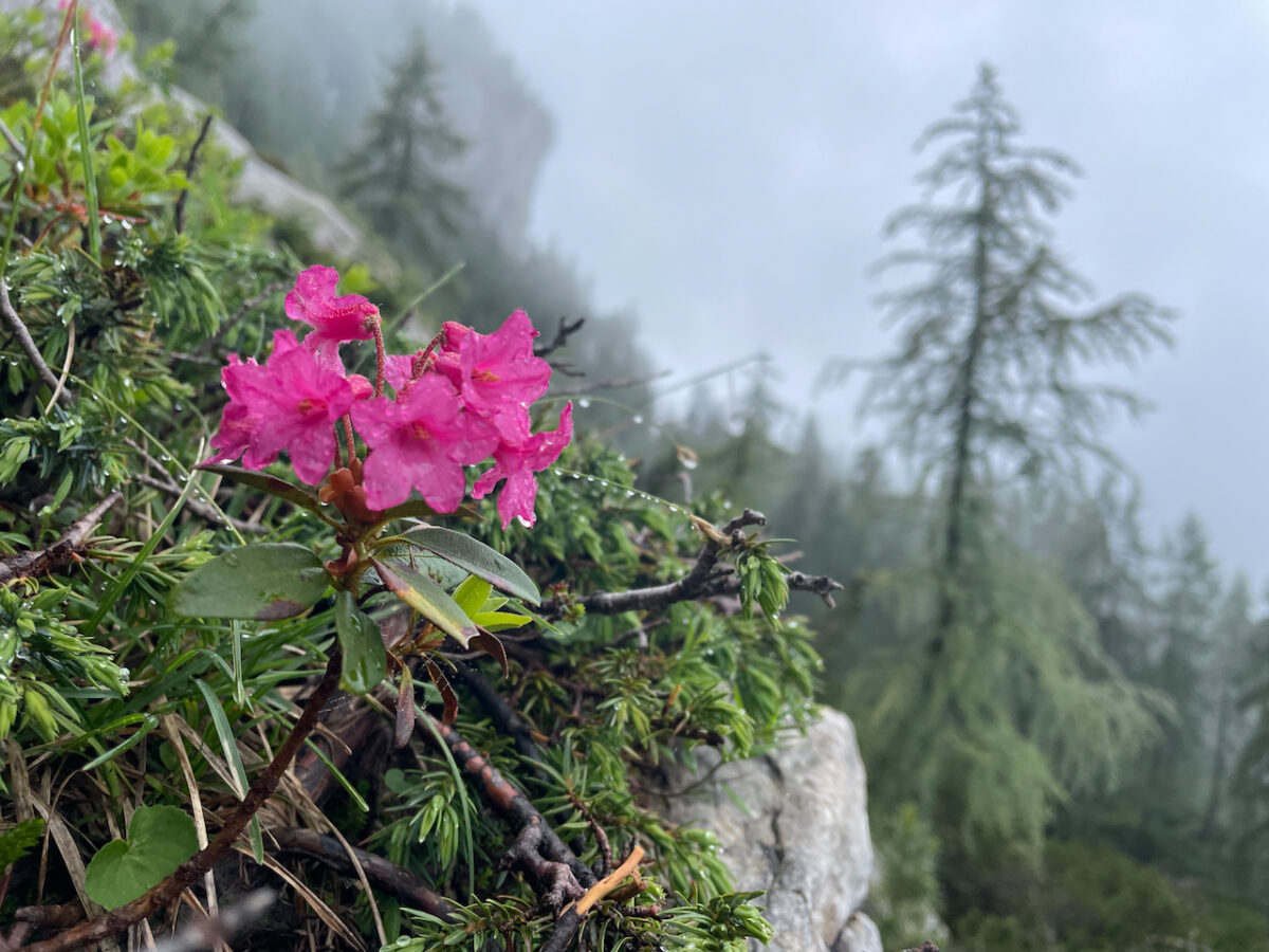 Der Regen bleibt. Eigentlich wollten wir heute tiefer ins Steinerne Meer hineinsteigen. Doch das Wetter zwingt uns zum Umplanen. Durch Nebel steigen wir zum Halsköpfl hinauf – eine großartige Aussichtsloge über dem Königssee. Heute sehen wir kaum zwanzig Meter weit.