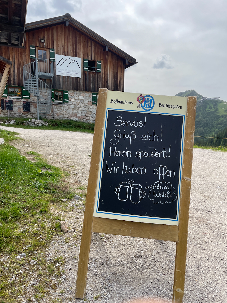 Unterhalb des Jenners geht es weiter hinauf zum Schneibsteinhaus. Die gut tausend Höhenmeter sind technisch einfach, aber sie ziehen sich. Als wir schließlich ankommen, fällt der Rucksack mit einem dumpfen Schlag auf den Boden.