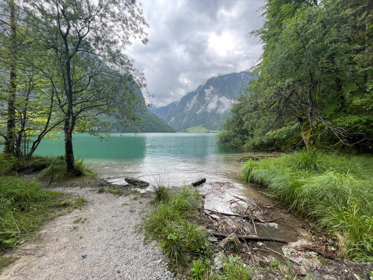 Der Weg durch die Saugasse zieht sich in 36 Kehren hinunter zum Königssee. Mit jedem Schritt wird die Luft wärmer, der Wald dichter. Irgendwann schimmert zwischen den Bäumen wieder das Wasser. Vier Tage waren wir über diesem See unterwegs.