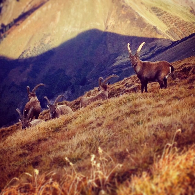 Von hier in stetem bergauf-bergab hinauf auf das Kreuzeck (2386), hinab in den Sattel (2261m) und immer dem Grat folgend hinauf zum Rauheck (2384m). Wer etwas Glück hat, kann hier Steinböcke in ganz nah erleben. Der Weg kann auch durch einen Abstieg vom Kreuzeck über den Bettlerrücken meist weglos zur Traufbergalpe und in die Spielmannsau abgekürzt werden.