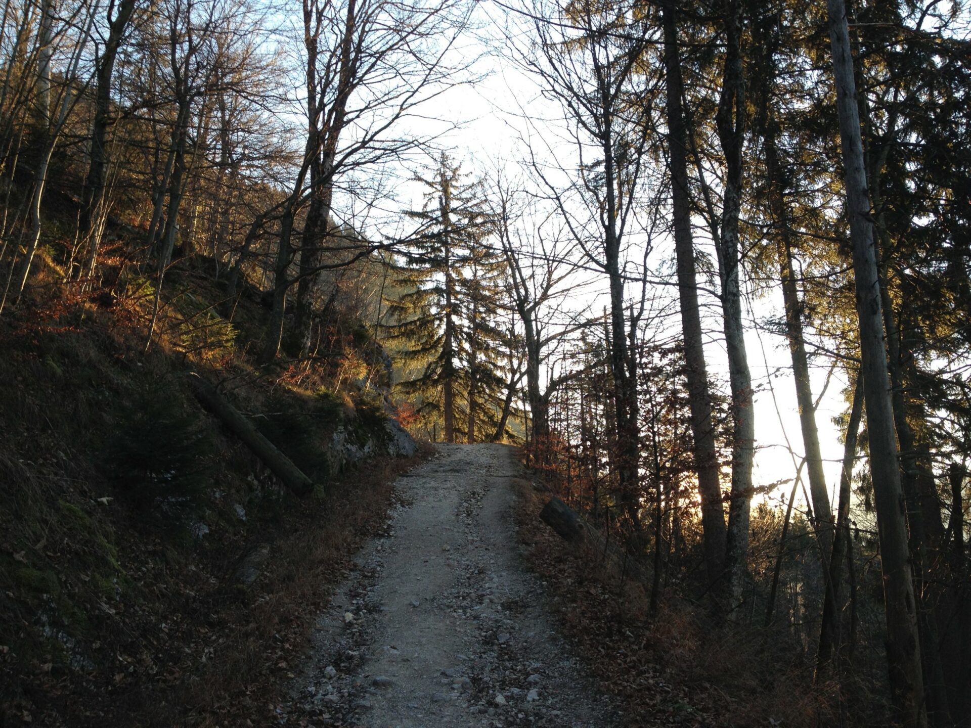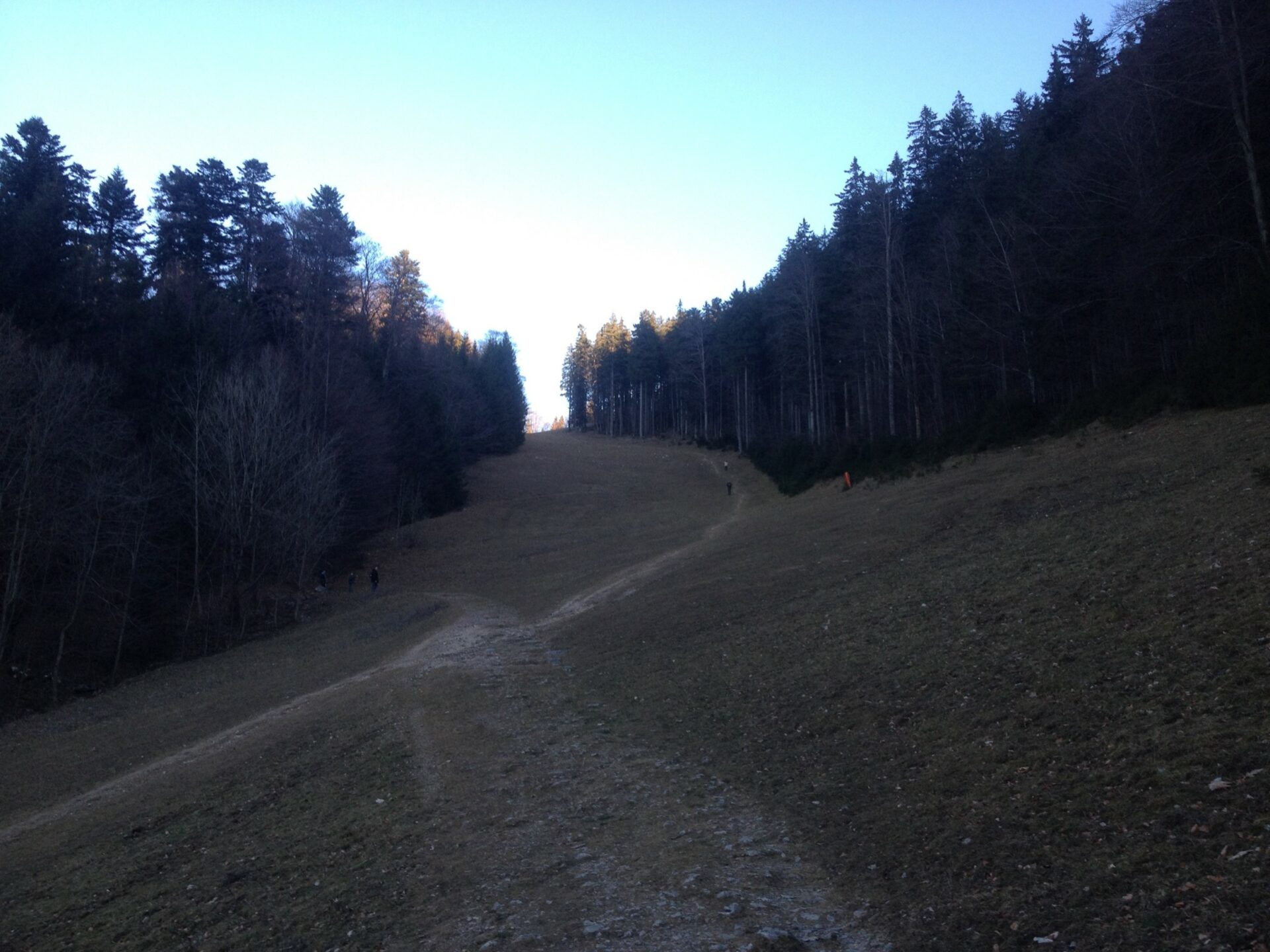 Von der Gori-Alm geht es dann noch die letzten Sonnenstrahlen ausnutzend noch rund eine Stunde hinunter ins Tal zur Talstation der Kampenwandbahn. Wir nutzen dabei den etwas steileren Abstieg über den „Ziehweg“ (die Skipiste) hinunter und die Kinder machen ganz schön Tempo. Unten am Parkplatz der Kampenwandbahn wird’s dann schon fast finster und wir machen uns auf den Heimweg.
