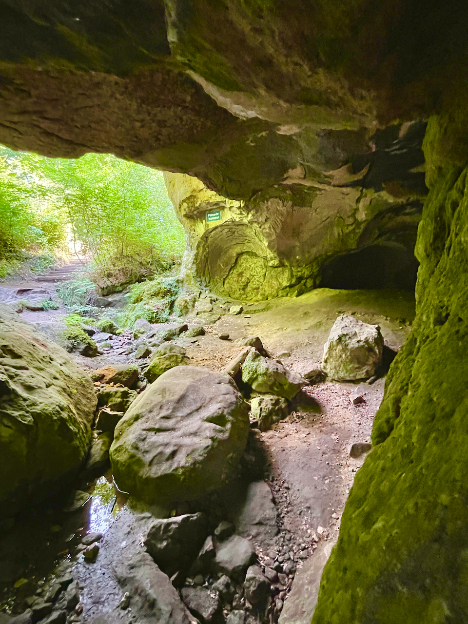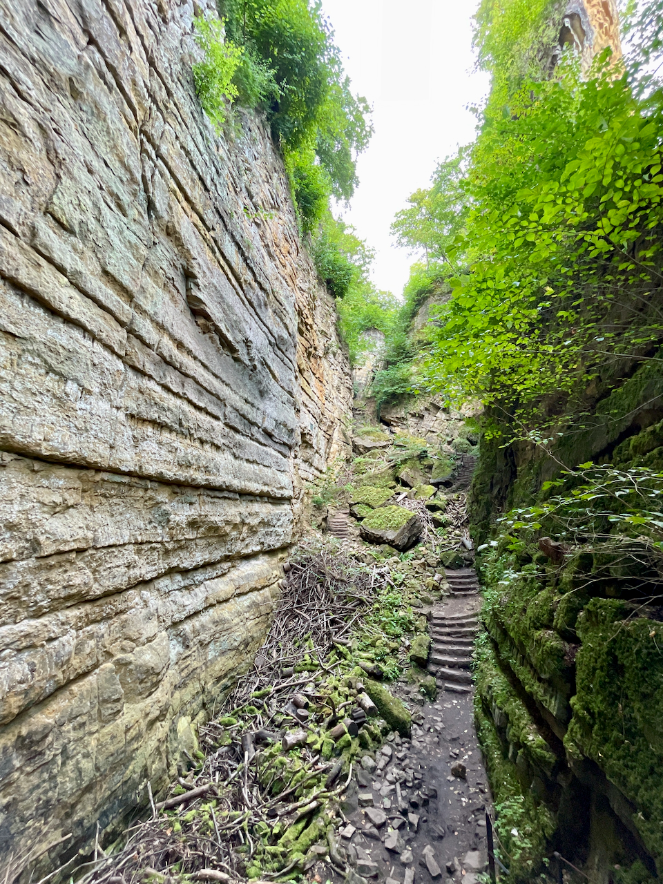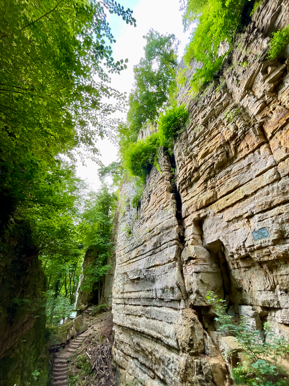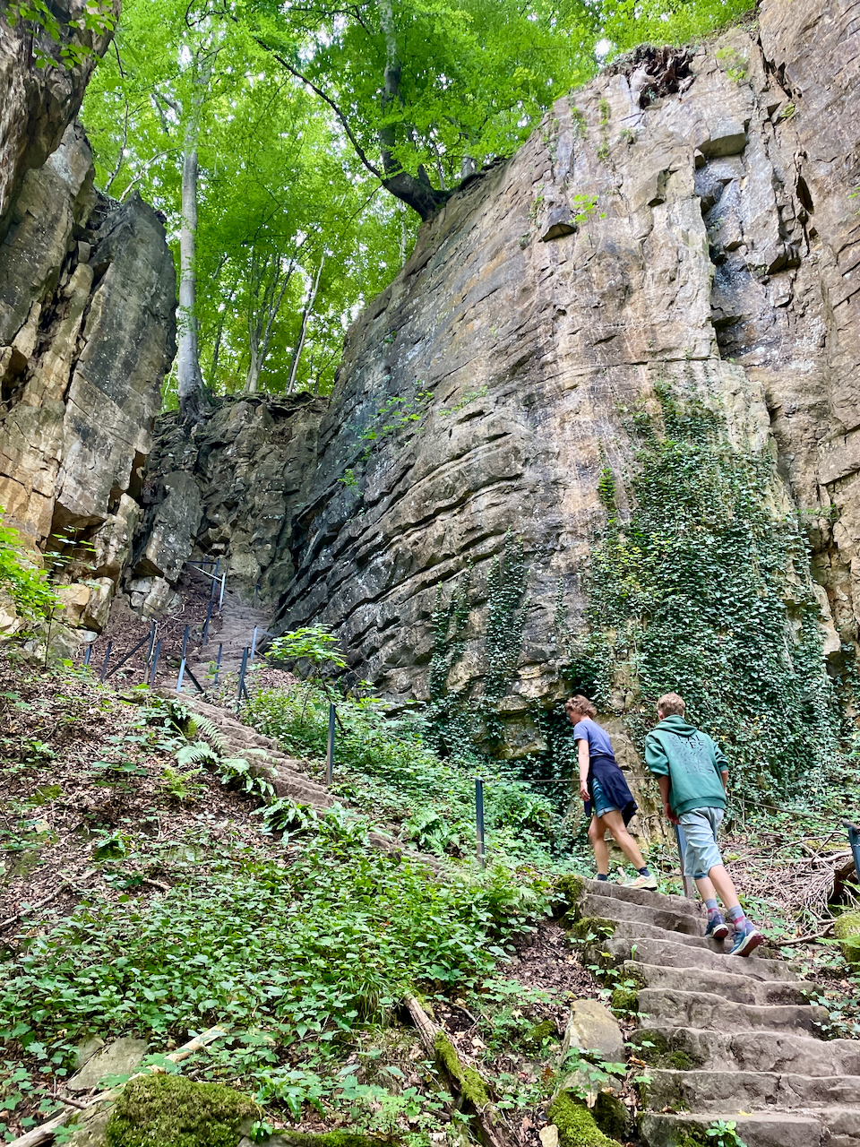 Durch die besondere Lage herrscht hier ein eigenes Mikroklima: Selbst an heißen Sommertagen bleibt es angenehm kühl und feucht, was Moosen und Farnen ideale Bedingungen bietet. Der Weg ist gut gesichert, verlangt aber Trittsicherheit und etwas Beweglichkeit – vor allem, wenn es nass ist.