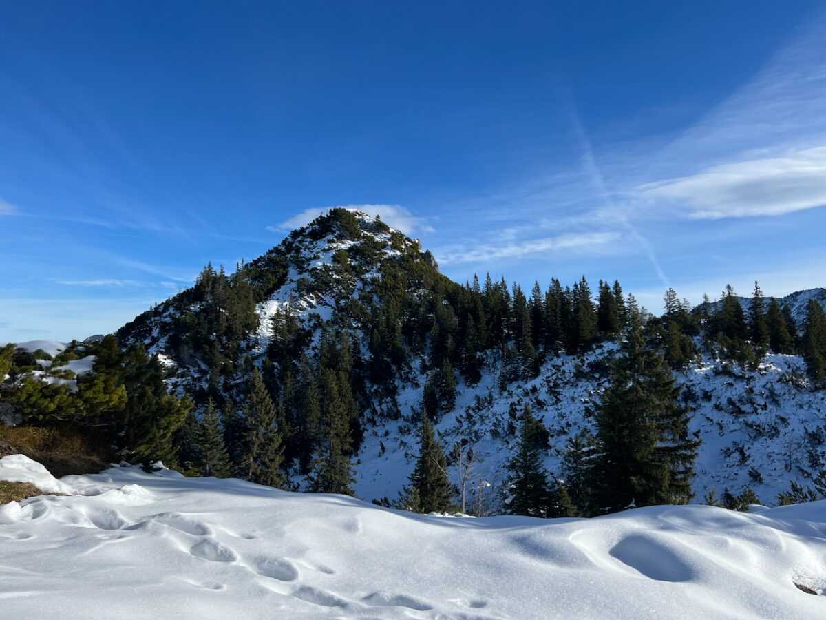 Der Schildenstein ist ein Klassiker der Bergtouren in den Münchner Hausbergen. Im Sommer über die Wolfsschlucht oder wie hier im Winter über die Königsalm. Und auch im Winter führt eigentlich immer eine Wegspur hinauf zur genialen Aussicht über Tegernsee und Achensee.