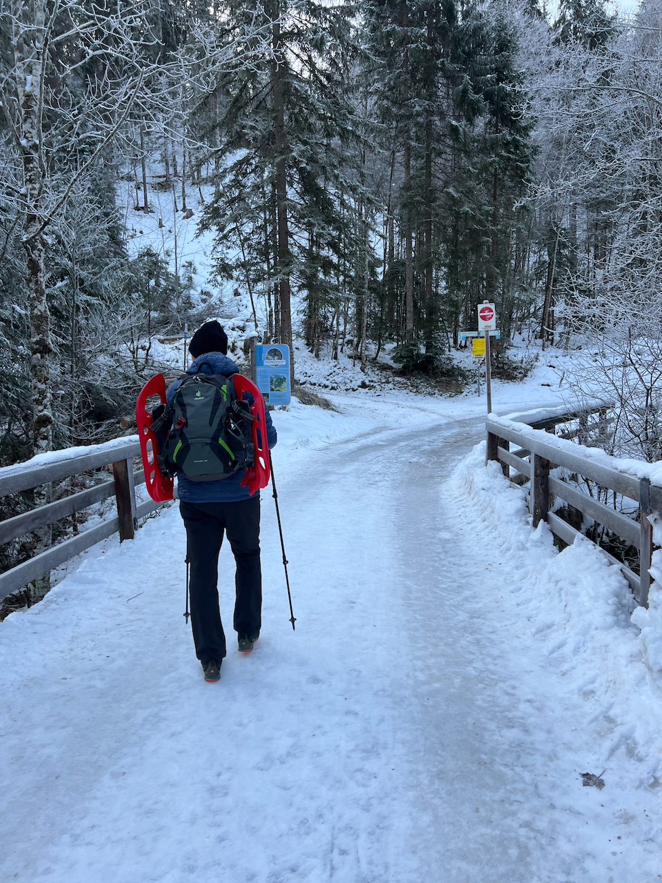 Mit rund einem halben Meter Schnee fühlt man sich endgültig mitten im Winter angekommen. Die Bäume tragen dicke Schneemützen und die Landschaft wirkt ein bisschen wie aus einer Weihnachtskarte.
